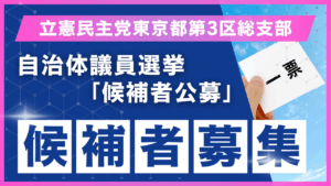 候補者募集のお知らせ 立憲民主党東京都第3区総支部では、品川区議会議員及び島しょ部議員の候補者を大募集しています! 議員になって社会を変えたい!という信念のある方、ぜひご応募ください。 挑戦することで必ず世界が広がります […]