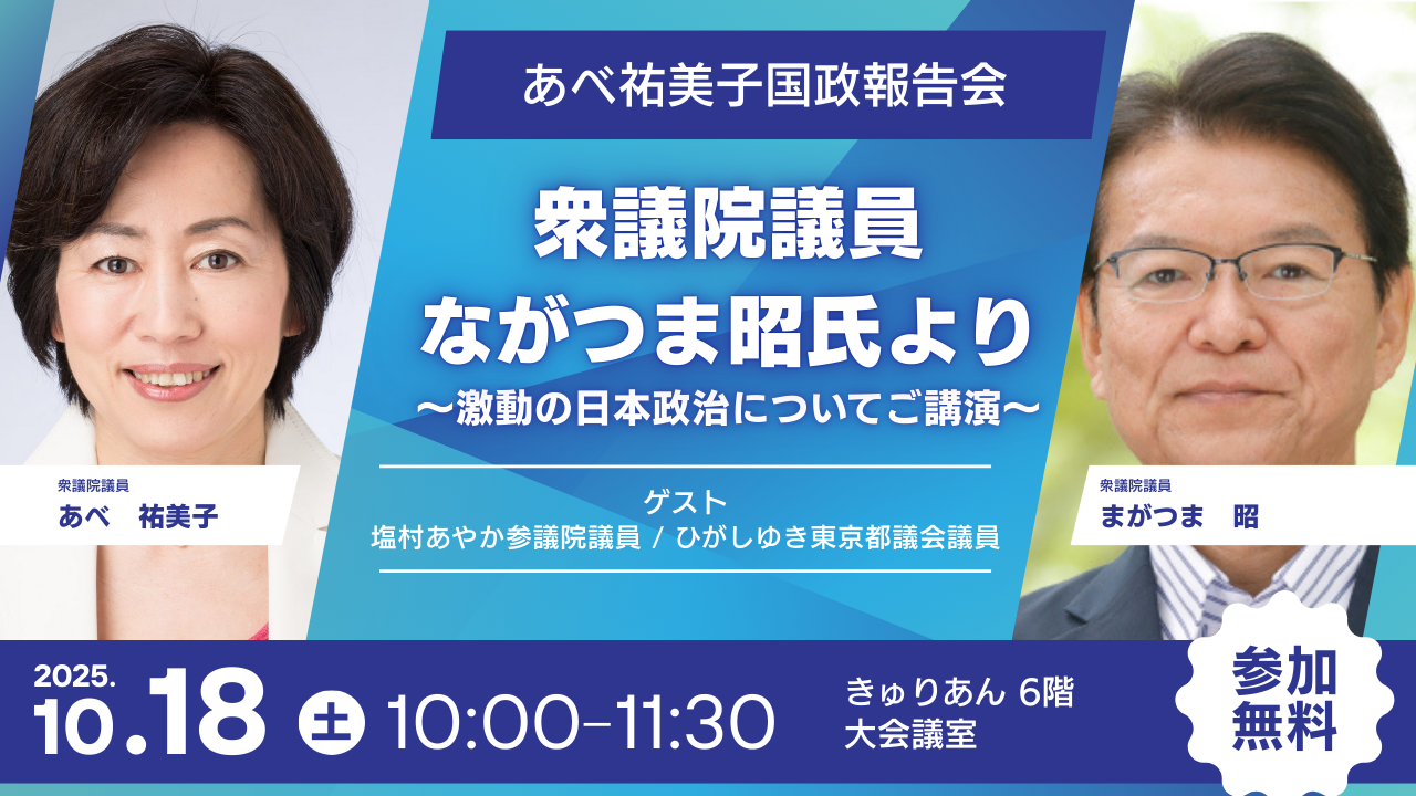 以下の日程で「あべ祐美子国政報告会」を開催いたします。