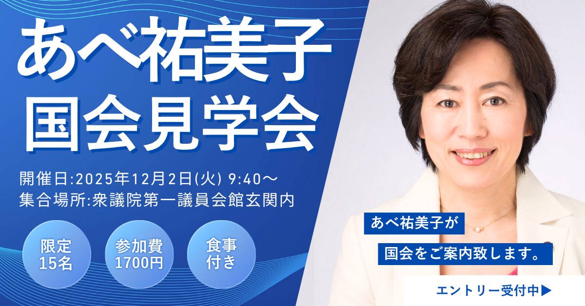 以下の日程で「あべ祐美子国会見学会」を開催いたします。